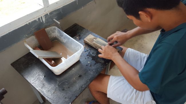 กบธรรมศักดิ์ เป็นกบเทพในตำนานเลยทีเดียว ก่อนเริ่มการไสกบจะต้องลับใบกบให้คมกริบกันก่อนนะครับ เสียเวลาลับใบกบ แต่ประหยัดแรงในการไสมากเลยทีเดียว และจะไสได้แม่นยำยิ่งขึ้นครับ